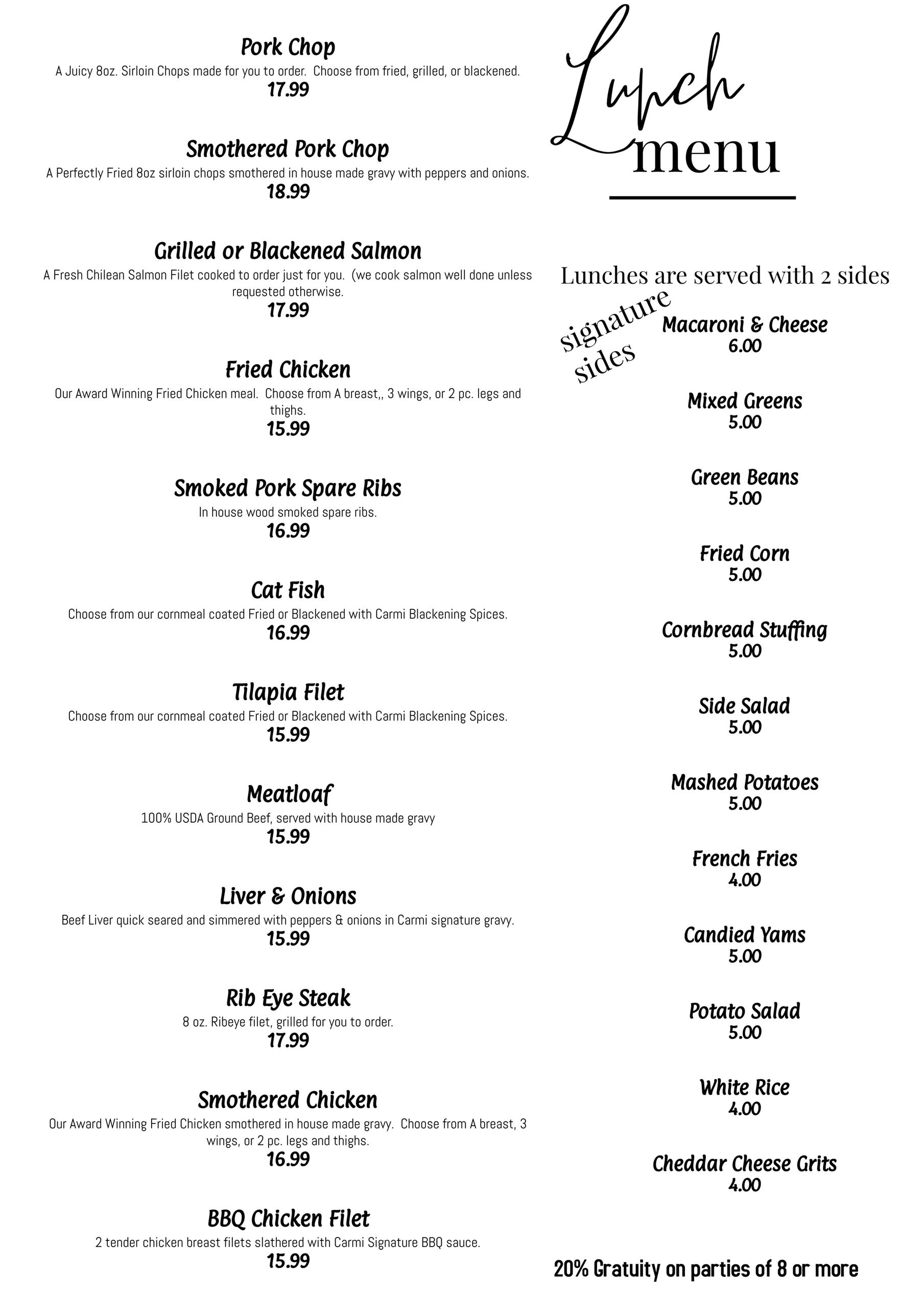 Carmi Soul Food Restaurant Menu In Pittsburgh Pennsylvania Usa